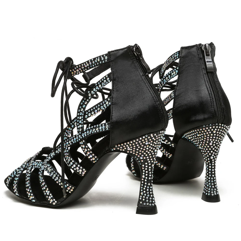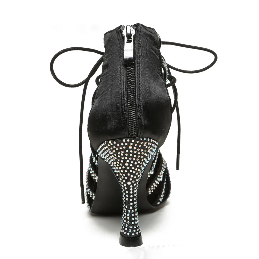 Ladies Satin Diamond Latin Dance Shoes Soft Soled High Heel Cha Cha Dance Shoes Indoor Party Sandals